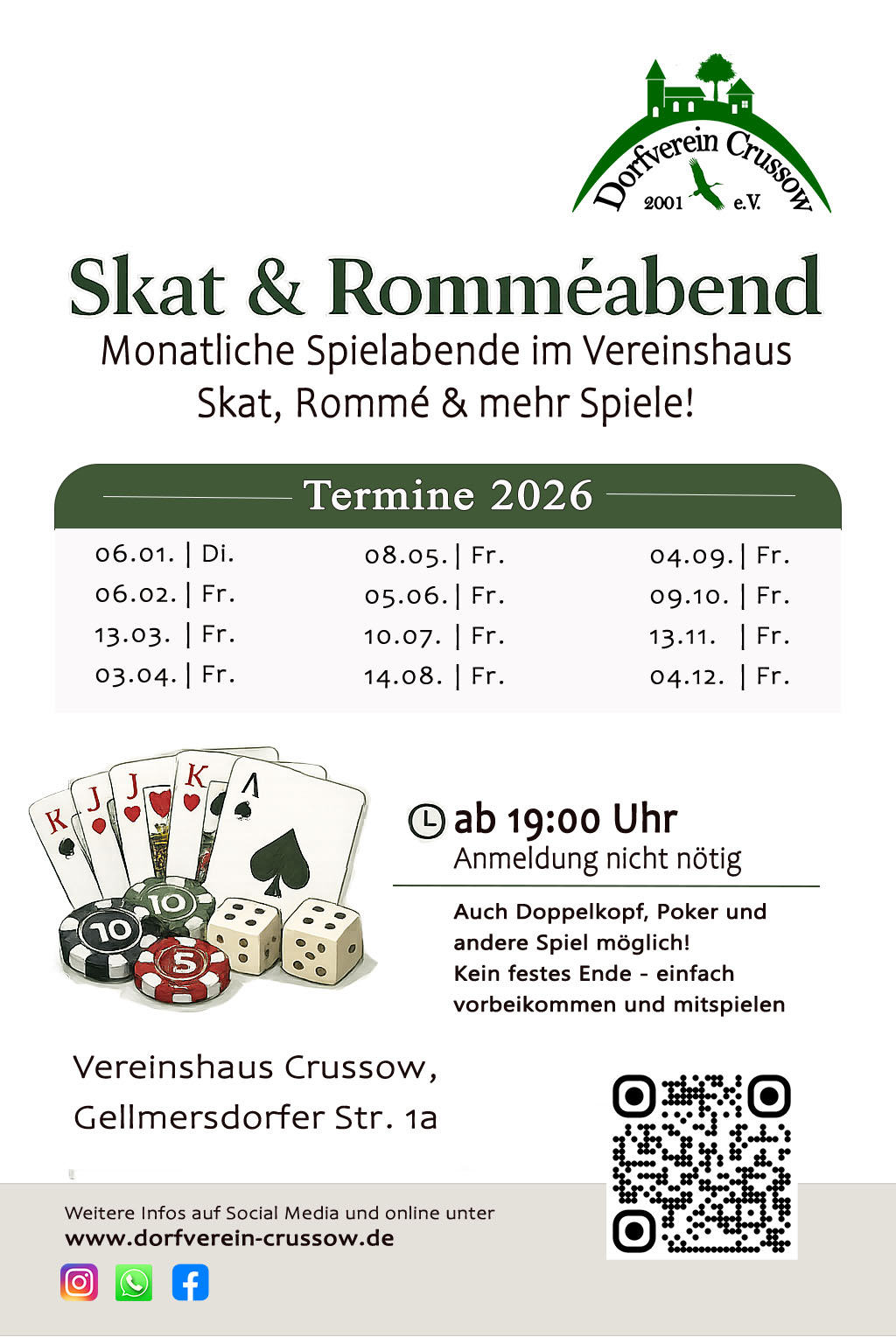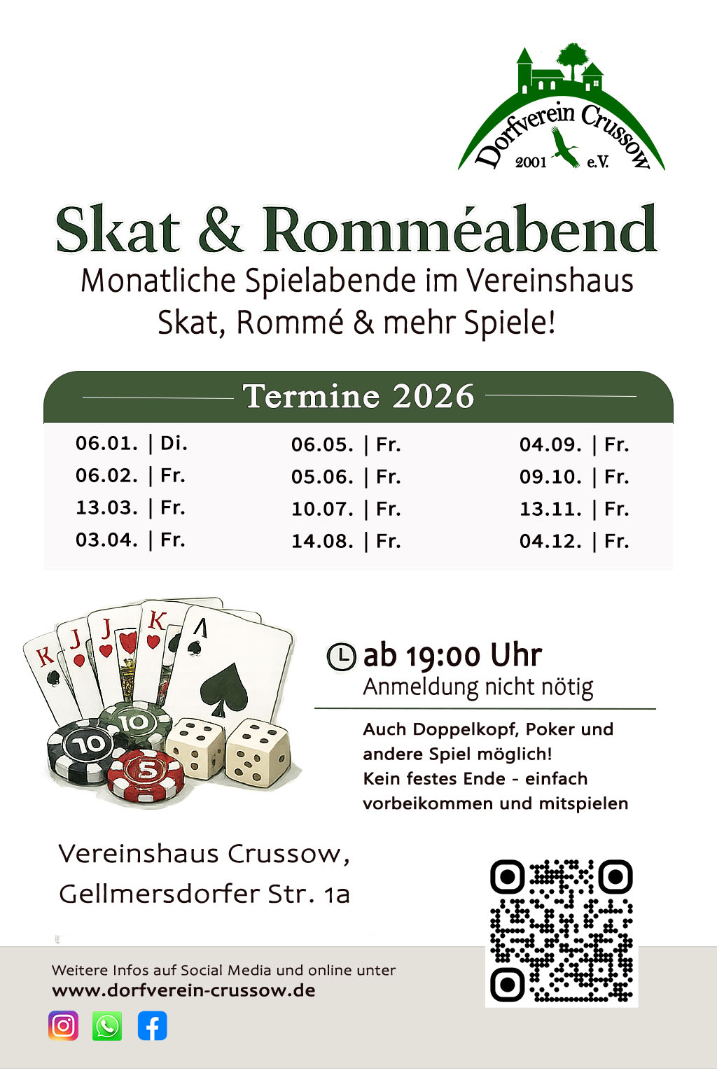Dieses Jahr wird es regelmäßige, monatliche Spieleabende im Vereinshaus geben. Es sind alle recht herzlich eingeladen.